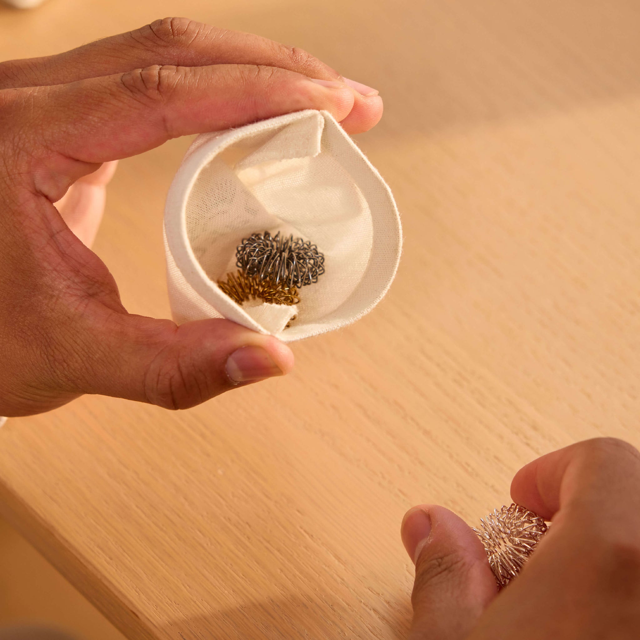 Piccoli strumenti. Impatto enorme. Il set di anelli Torus è uno strumento per il massaggio delle dita, per la concentrazione e per alleviare lo stress, da portare ovunque. Arrotolateli su e giù per ogni dito per colpire gli agopunti chiave che calmano la vostra mente e vi riportano in linea. Giocateci quando siete immersi nei vostri pensieri o nelle vostre serie preferite.